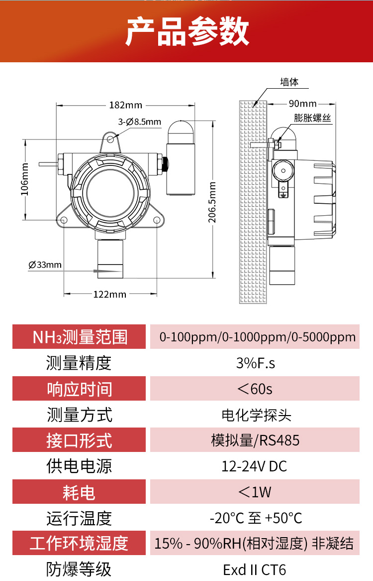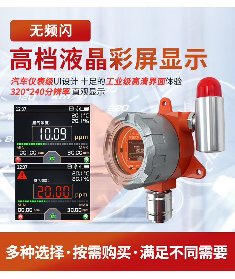 固定式氨氣傳感器是新型的高科技電子儀表,采用高精度氨氣傳感器作為檢測元件,靈敏度高,響應速度快。當氨氣報警器探測到環境中氣體的濃度達到或超過預置報警值時,報警器會通過屏蔽電纜線將信號傳到控制器,控制器立即發出聲光報警。固定式NH3氨氣傳感器廣泛適用于各類型冷庫機房、有氨氣存在的實驗室、氨氣存放倉庫等。氨氣傳感器可以有效的預防中毒事故、爆炸發生。