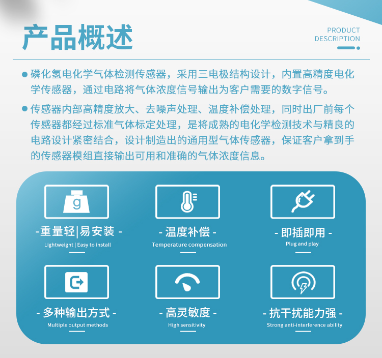 磷化氫電化學氣體傳感器是利用電化學檢測技術來檢測磷化氫氣體濃度的PH3傳感器。磷化氫電化學氣體傳感器采用三電極結構的高性能芯片,大大提升了產品性能。電化學磷化氫傳感器具有可變增益放大電路,抗干擾能力強。適用于氣體檢測、工業氣體、科學實驗、產品生產等領域的磷化氫氣體濃度檢測。