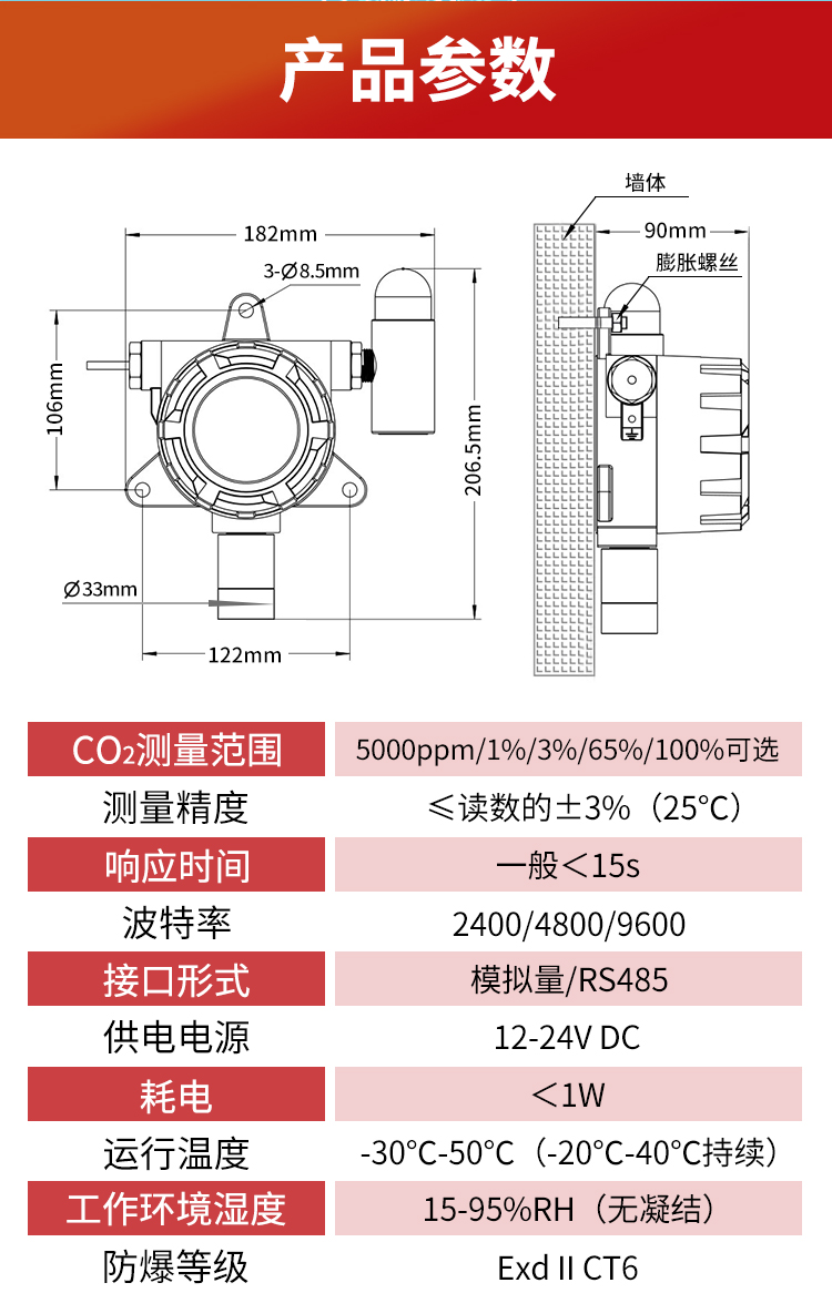 固定式二氧化碳傳感器描述: