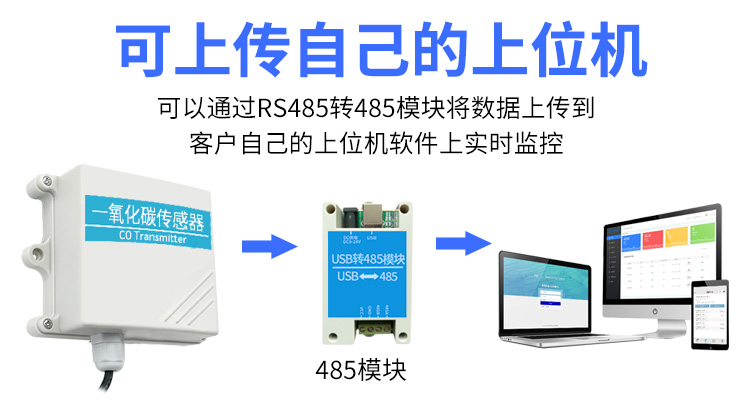 可以通過(guò)RS485轉(zhuǎn)485模塊將數(shù)據(jù)上傳到客戶自己的上位機(jī)軟件上實(shí)時(shí)監(jiān)控。