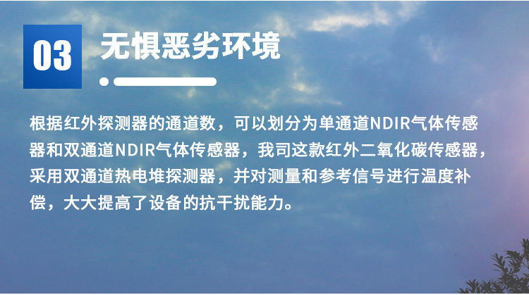 紅外二氧化碳傳感器是用于檢測二氧化碳濃度的CO2傳感器,采用了非色散紅外(NDIR)原理對空氣中存在的CO2進行探測。具有優異的性能特性,包括高精度和低功耗。 模塊含有兩個探測元件使測量更準確。紅外CO2傳感器的用途廣泛,可用于創造舒適環境與節能兩不誤的換氣控制與空調設備、小型檢測器等等,也可用于工業氣體生產商、工業氣體用戶和安全監測。