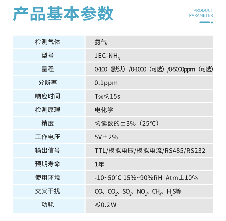 檢測氣體:氨氣