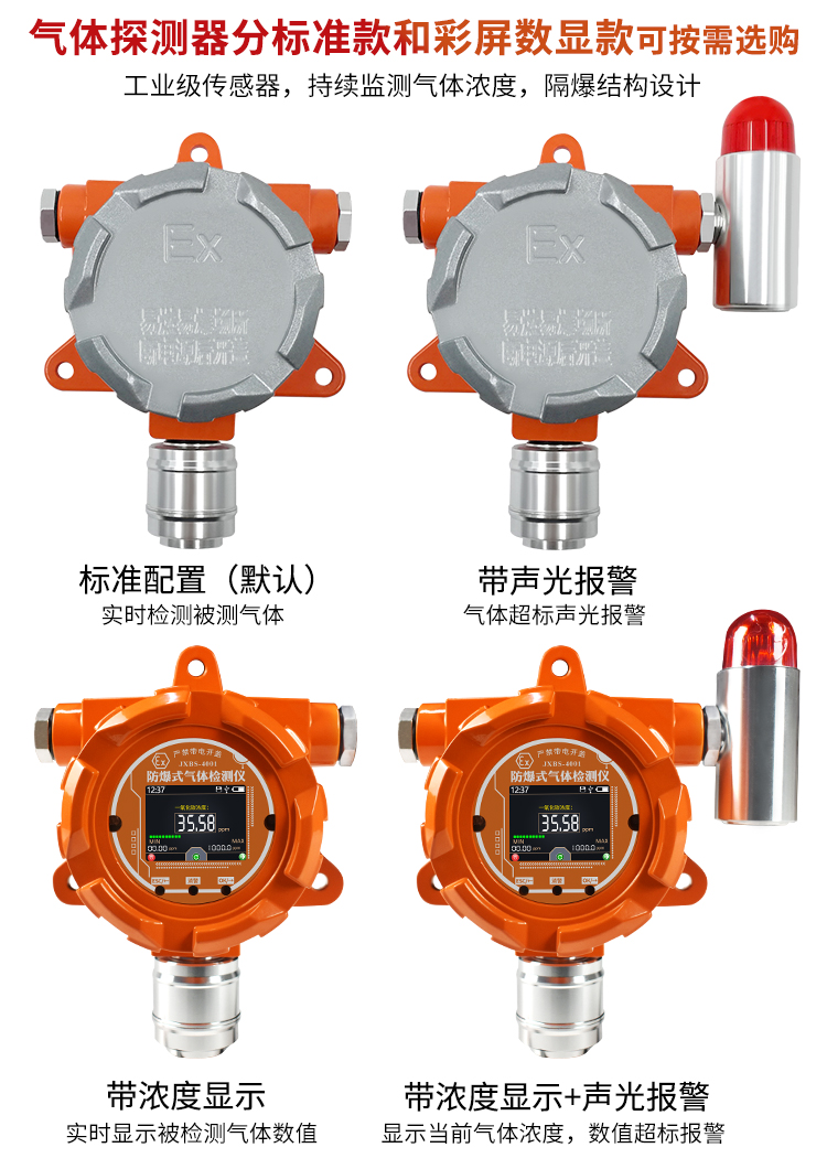 固定式CO氣體傳感器是可以在多種惡劣環(huán)境下檢測CO氣體濃度的CO氣體傳感器。固定式CO氣體傳感器分為標(biāo)準(zhǔn)款和彩屏數(shù)顯款,可供用戶選擇,可根據(jù)用戶的需求同時監(jiān)測4個參數(shù)。具有采用壓鑄鋁技術(shù)的防爆外殼,防水,防爆,防塵,抗冷凝。可遠(yuǎn)程遙控,智能方便。CO氣體傳感器適用于化工廠、加油站、燃?xì)夤艿馈N房、倉儲等多個領(lǐng)域中CO氣體濃度的檢測。