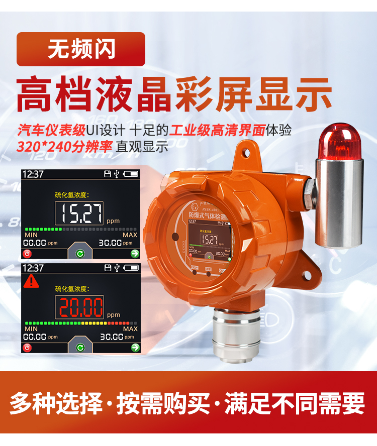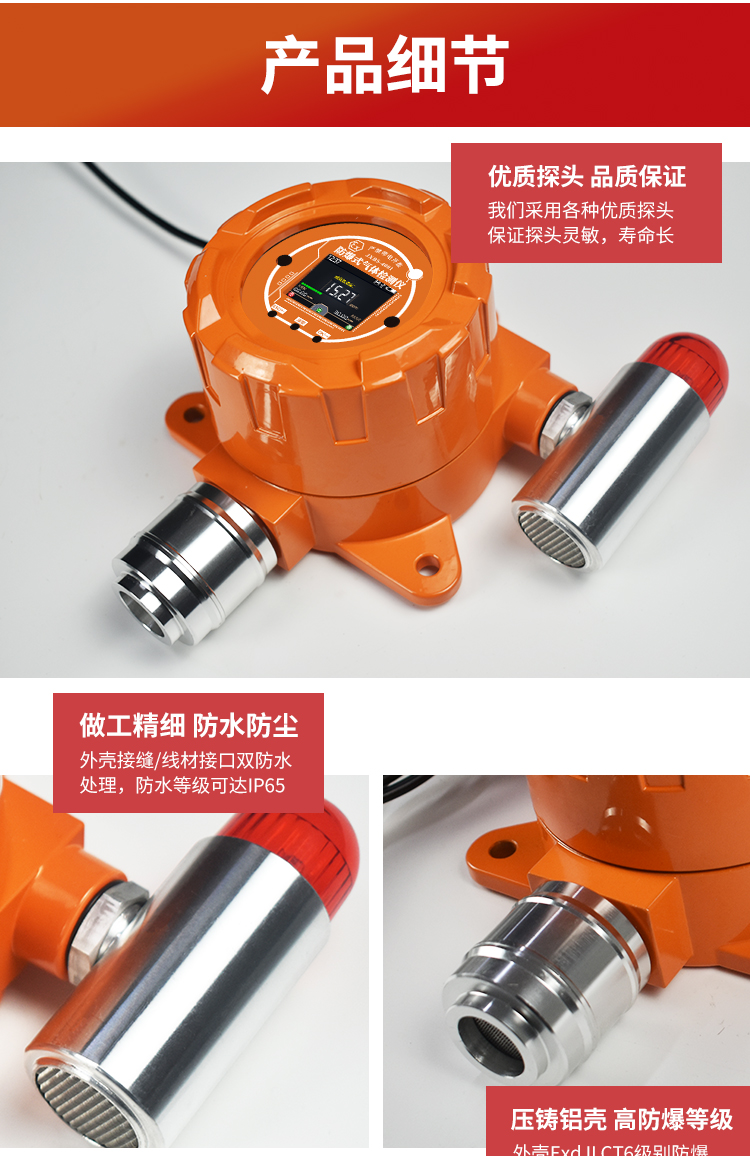 5、聲光報警,雙重保護:報警器可產生近80dB(A)警報聲并輔以紅色燈光提示,警示性強。