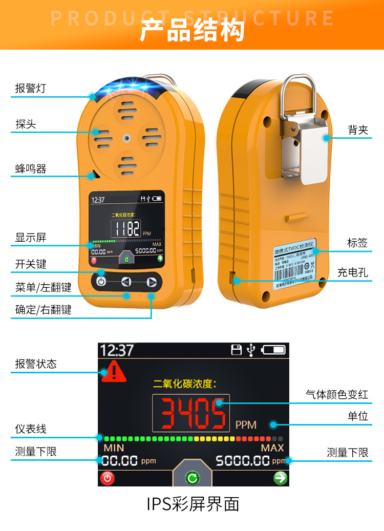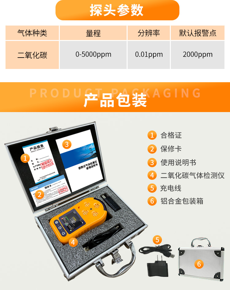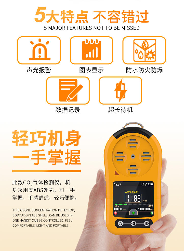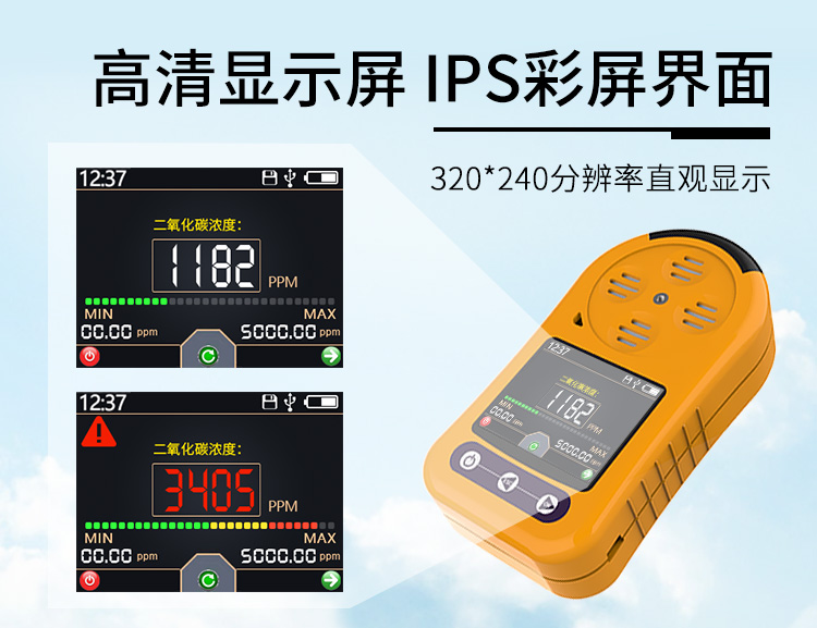 便攜式二氧化碳氣體檢測儀是一款方便個人攜帶并具有聲光報警功能的二氧化碳氣體檢測儀。儀器主要用于現場實時檢測二氧化碳氣體濃度值,二氧化碳傳感器位于儀器的內部。便攜式二氧化碳氣體檢測儀具有測量精度穩定、免維護、無須校準、使用壽命長、操作簡單、持久耐用 、反應靈敏等特點。二氧化碳氣體檢測儀的顯示屏上會顯示二氧化碳氣體濃度,廣泛應用于石化、環保、冶金、礦業、農業、實驗、測繪等行業。